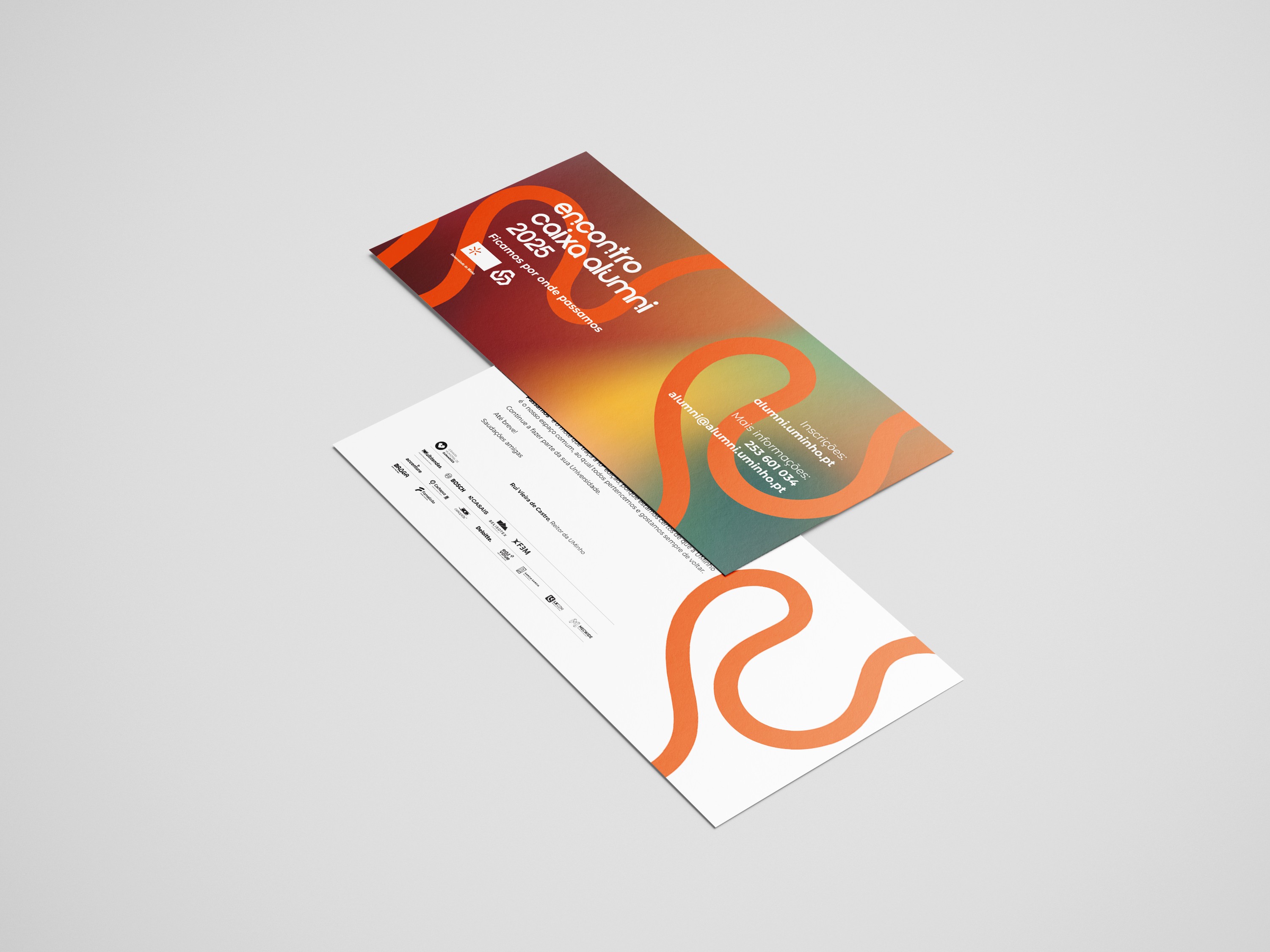 The theme of this edition, “Ficamos por onde passamos” / “We Stay Where We Pass”, guided the visual language, while a warm earth-tone gradient palette, chosen by the client, created a cohesive and inviting identity. The design concept uses dynamic lines to represent the paths of students throughout their journey.