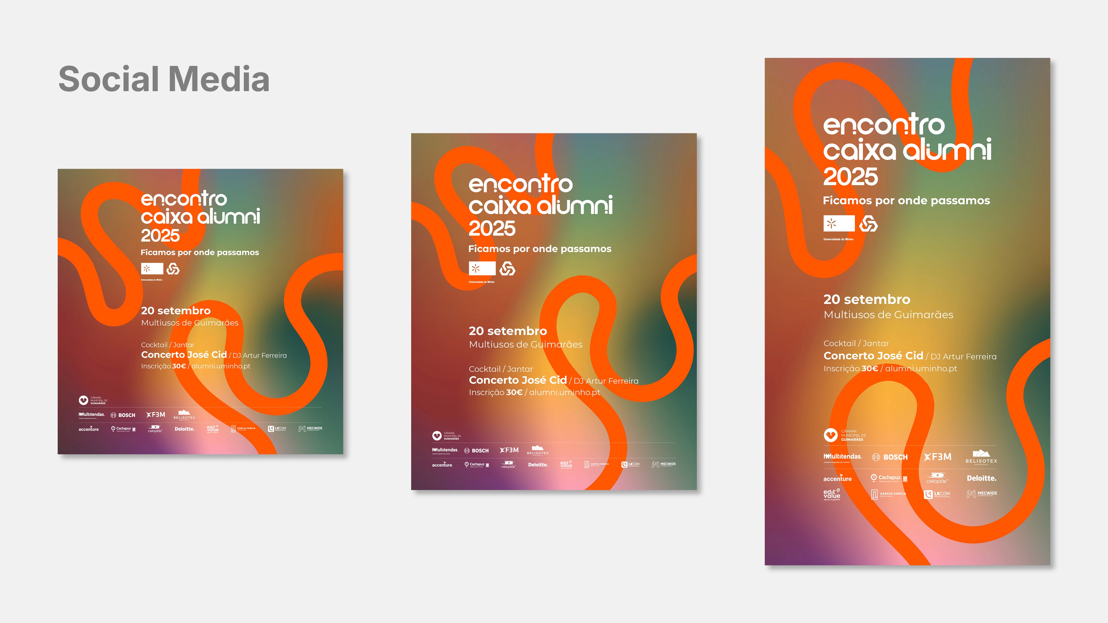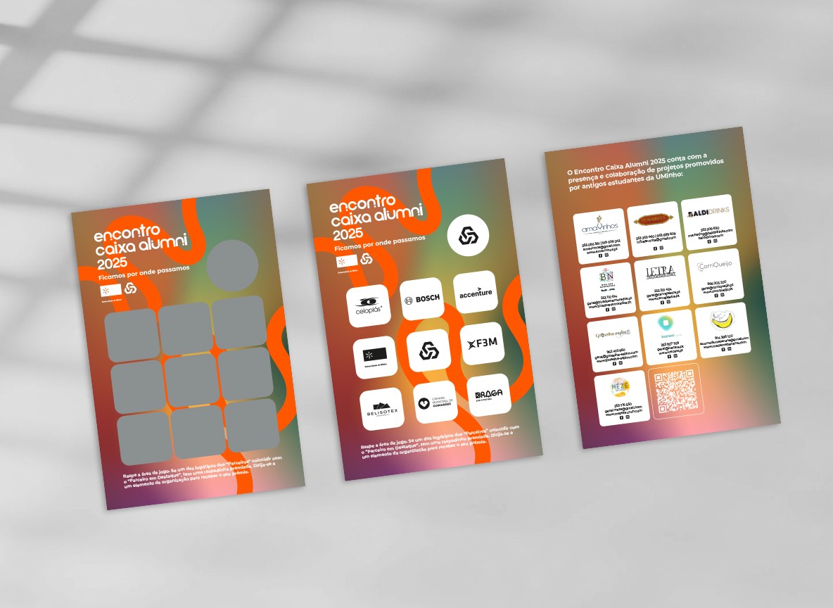 This was the third edition in which I participated of the Encontro Caixa Alumni meeting an annual reunion event for former students of the University of Minho. The project was carried out at LKCOM Marketing of Tomorrow, where I was responsible for creating the complete visual identity and all event materials for the event.